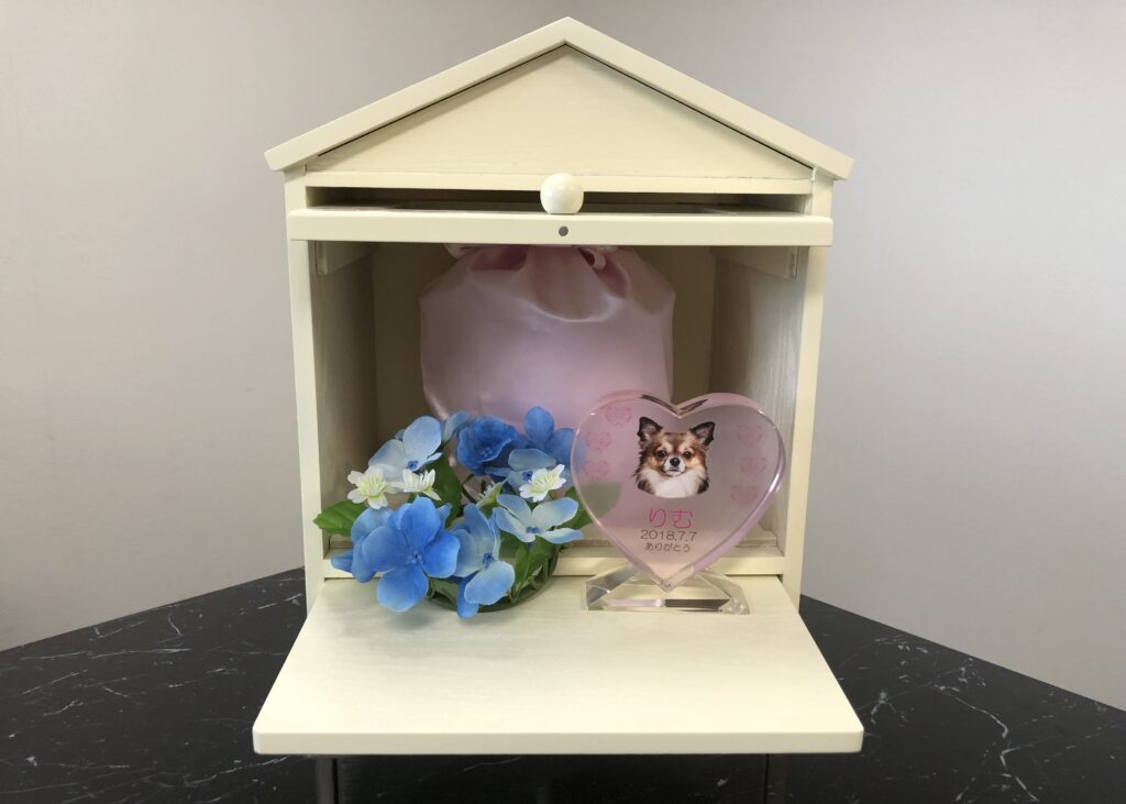 二代目飼い犬の鼓太郎が病気になり治療の甲斐なく9歳で亡くなり夫婦ともに落胆しておりましたところ、病院の先生の紹介で家に来てくれるという火葬をお願いしました。わが子も同然でしたので祭壇を準備していただきオール火葬という形でやっと心の整理をすることができました。位牌も作り今でも毎日お供えをして感謝の気持ちを伝えています。